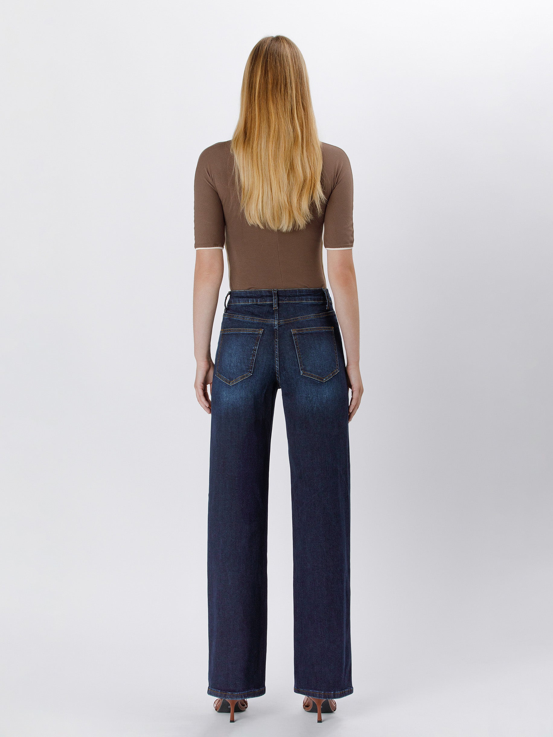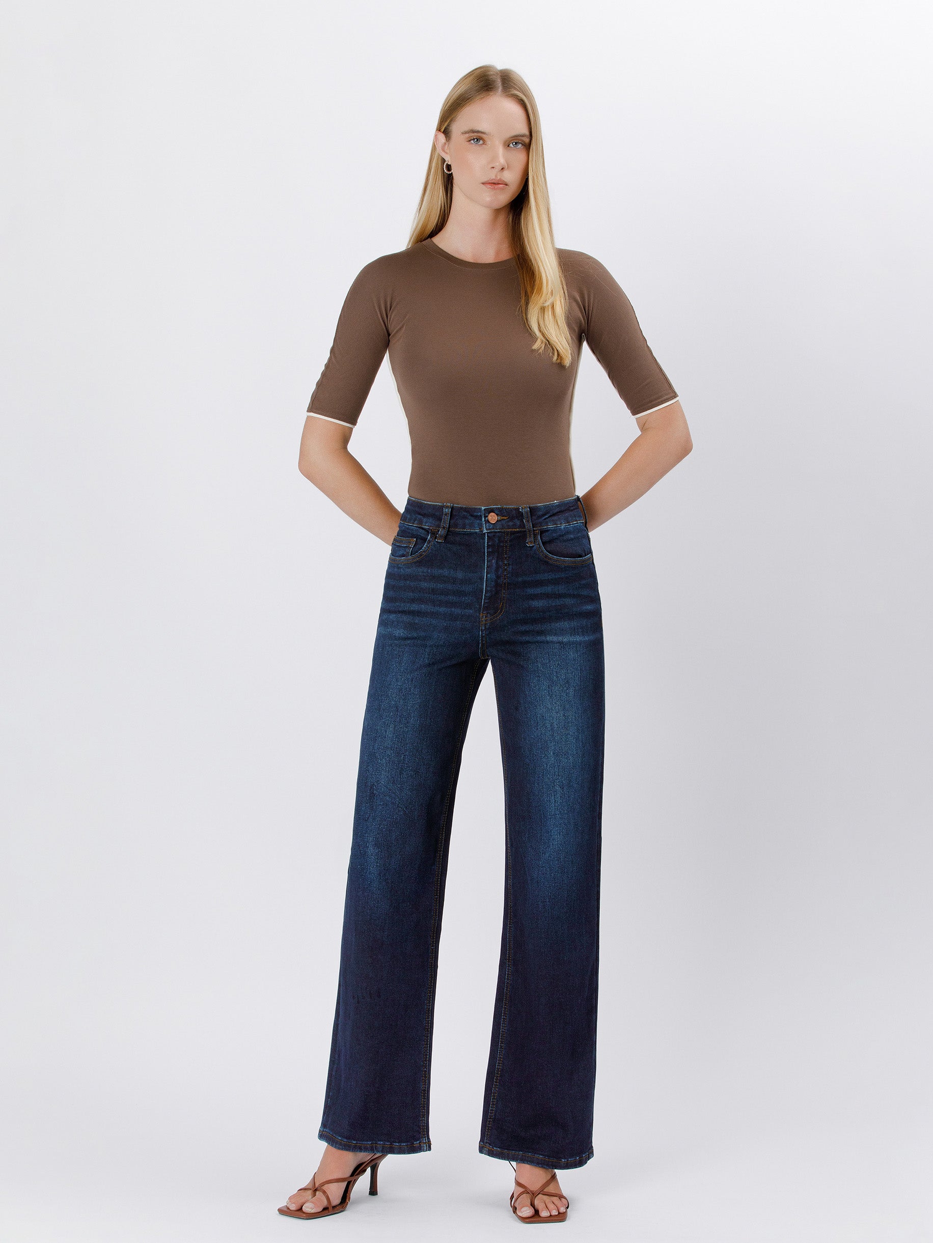 These Vervet Ainsley 90's Wide Leg Denim jeans blend vintage appeal with modern sophistication. Featuring a super high-rise fit and a flattering 31.5-inch inseam, they offer a timeless silhouette that elongates the legs. Crafted from quality denim, these wide-leg jeans provide both comfort and a polished look, perfect for elevating your everyday wardrobe with effortless style.