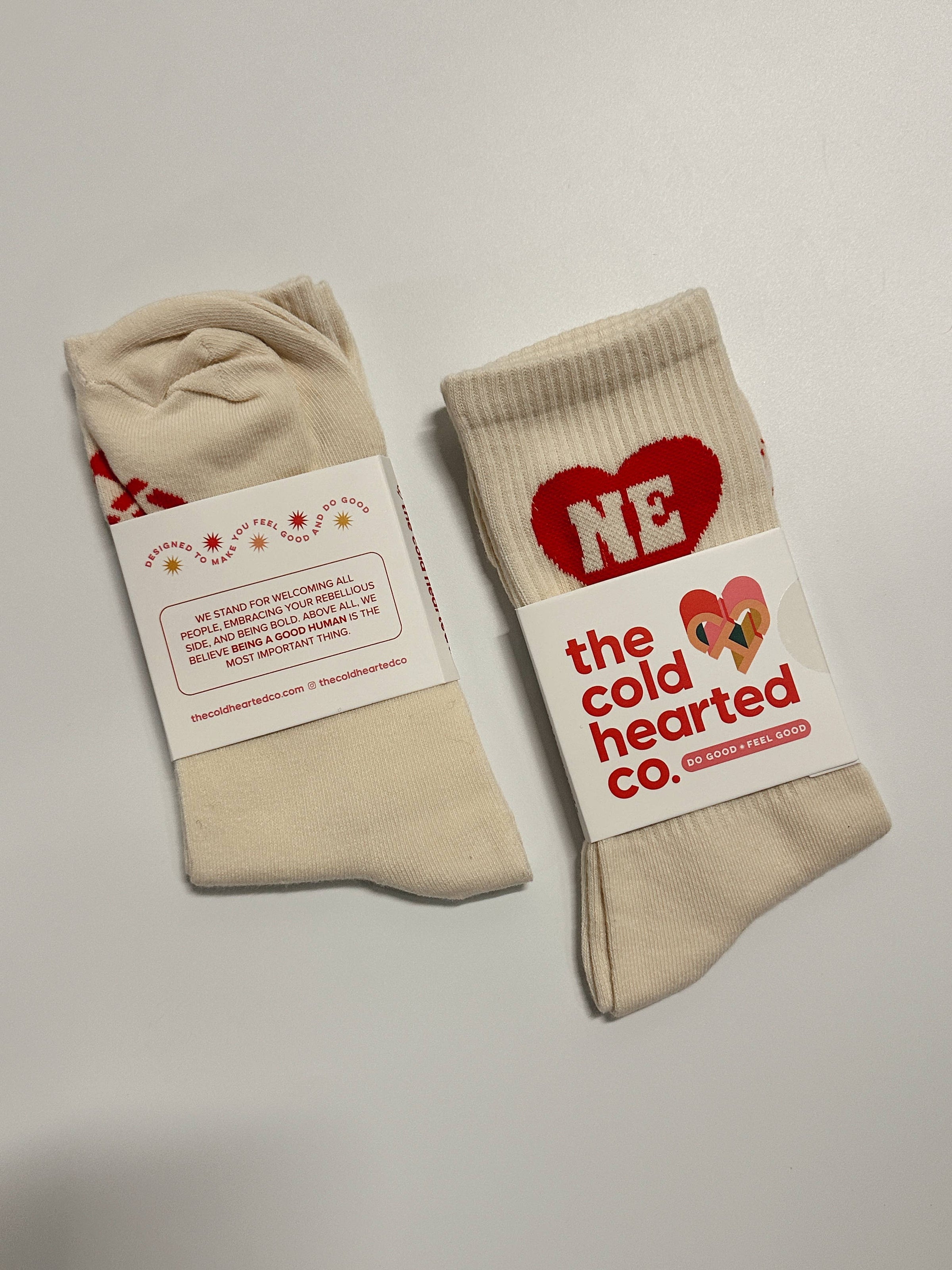 New socks have hit the shop, and they are the highest quality and coziest fabric you'll find! Our 100% cotton NE Heart socks were made for all people who love Nebraska - whether you're walking around exploring the city or heading to a Husker Football game.
